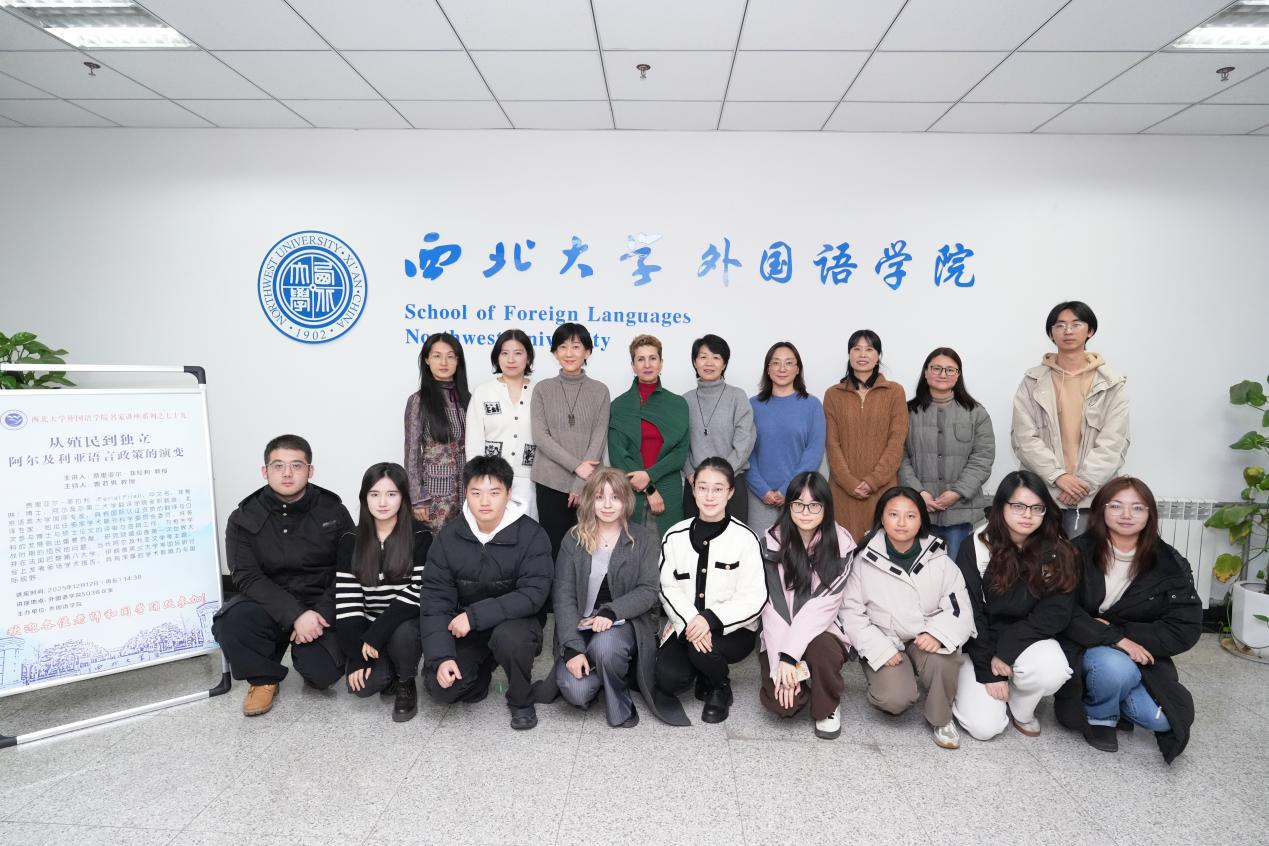 2025年12月12日,阿尔及利亚第二大学Filali Ferial(菲雅琳)教授应邀访问万象城官网,并作了题为《从殖民到独立:阿尔及利亚语言政策的演变》的学术报告。万象城官网区域国别研究方向的师生到场聆听,并与嘉宾展开了深入交流。