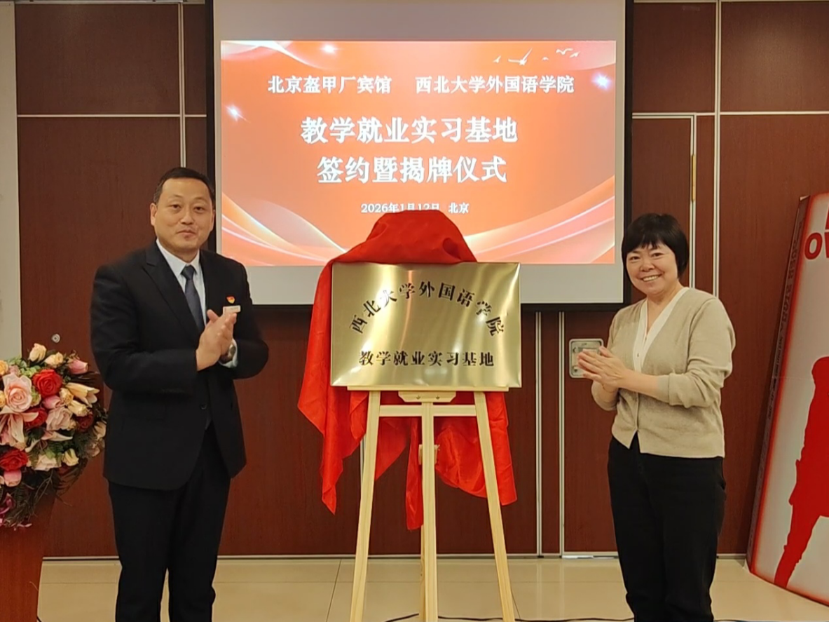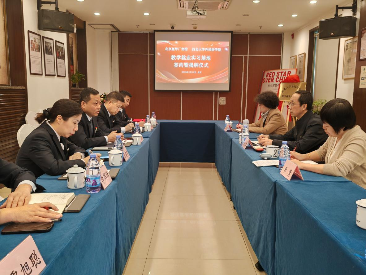 2026年1月12日,万象城官网与北京盔甲厂宾馆“教学就业实习基地”签约暨揭牌仪式在该宾馆会议室举行。万象城官网党委书记赵志厚、教学副院长李蓂、工会主席袁西玲及俄语系学生代表赵欣彤参加了签约仪式。北京盔甲厂宾馆总经理冯彦兵与宾馆管理团队共同出席了仪式并参与座谈。
