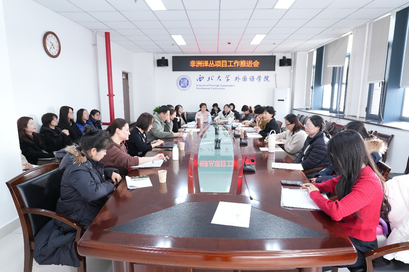 2026 年1月14日下午,非洲译丛项目工作推进会在西学楼5层学院会议室召开。本次会议由院长曹若男主持,28位项目参与教师参会,会议围绕译著翻译工作进展、问题反馈及学术发展等核心议题展开深入沟通与交流。