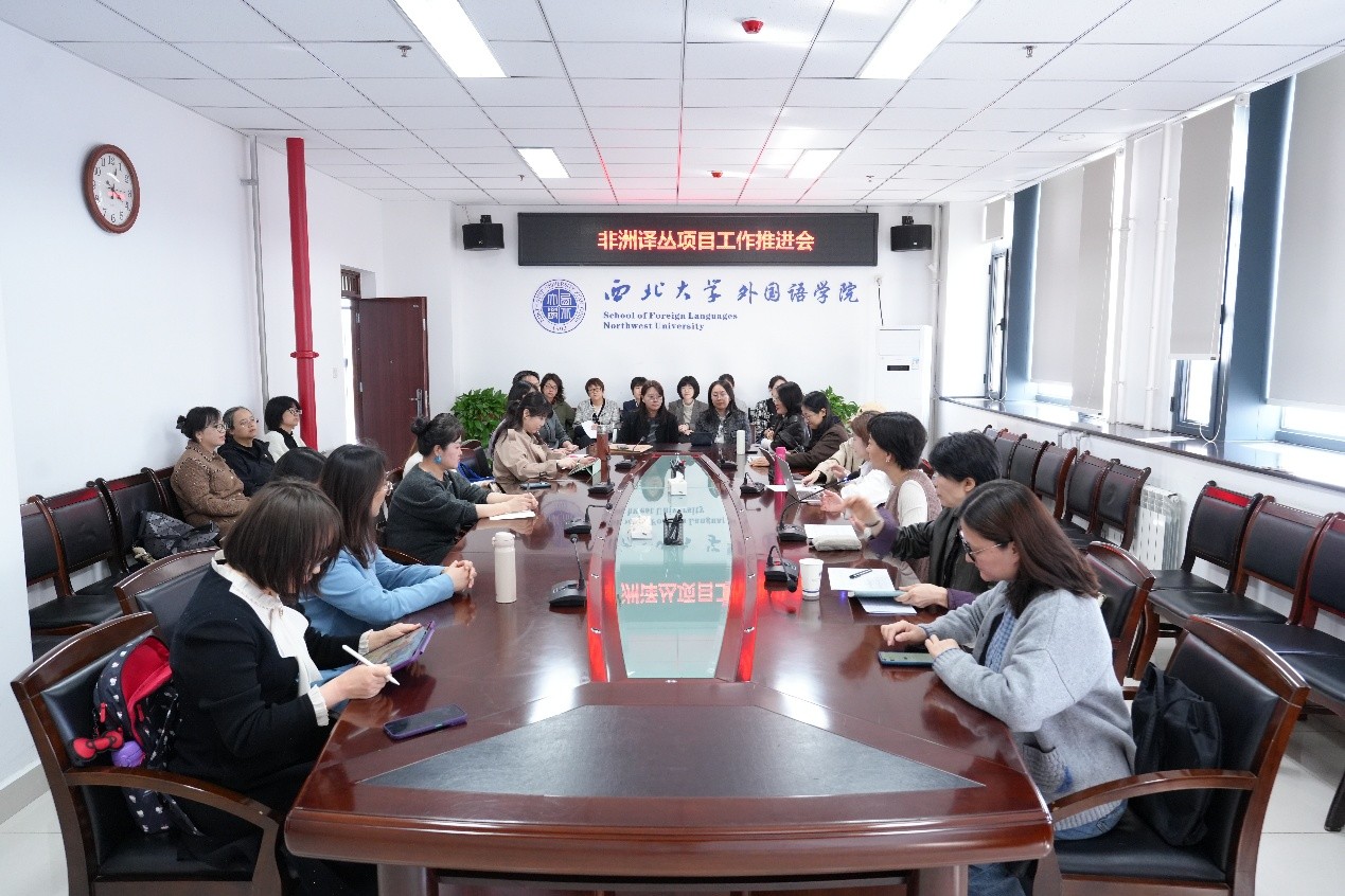 2026年4月1日下午3时30分,在学院会议室召开了非洲译丛项目工作推进会。会议由院长曹若男主持,20余位项目组教师参加了会议。